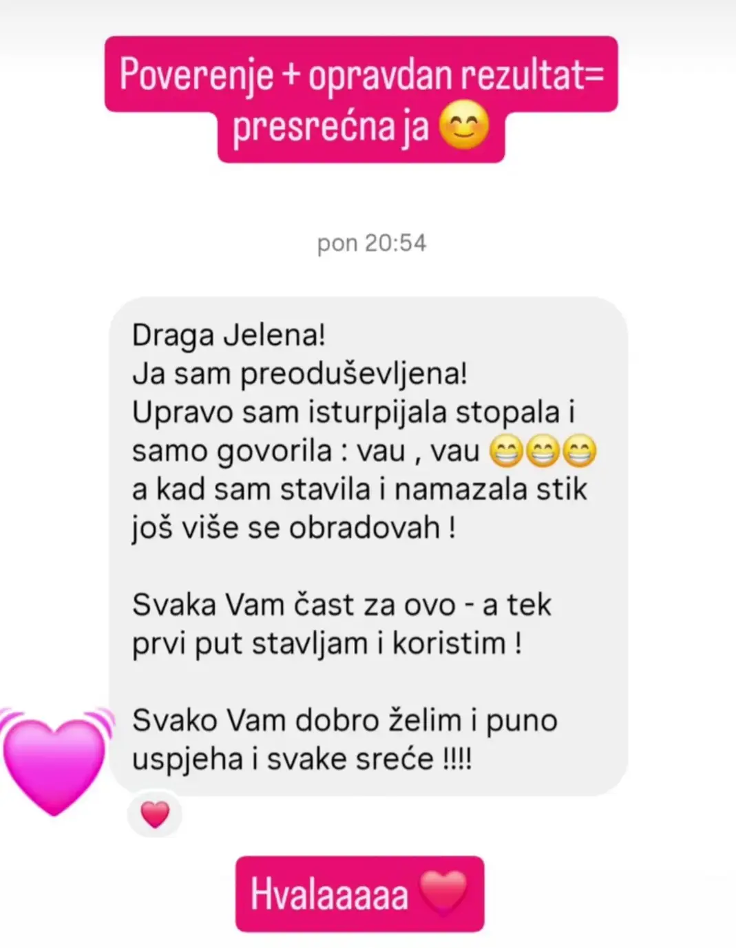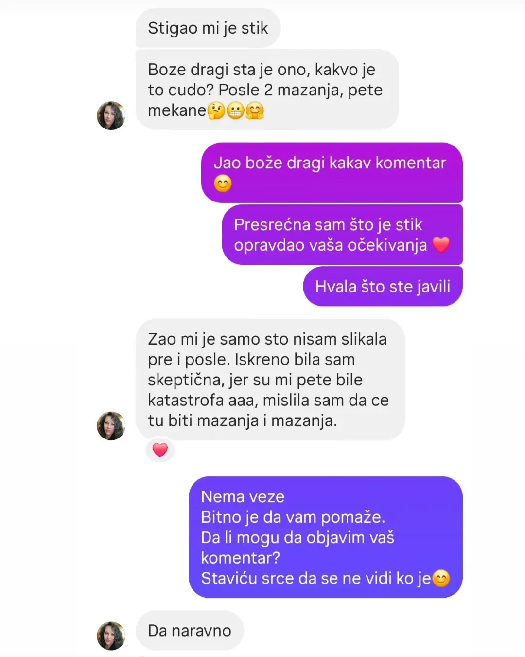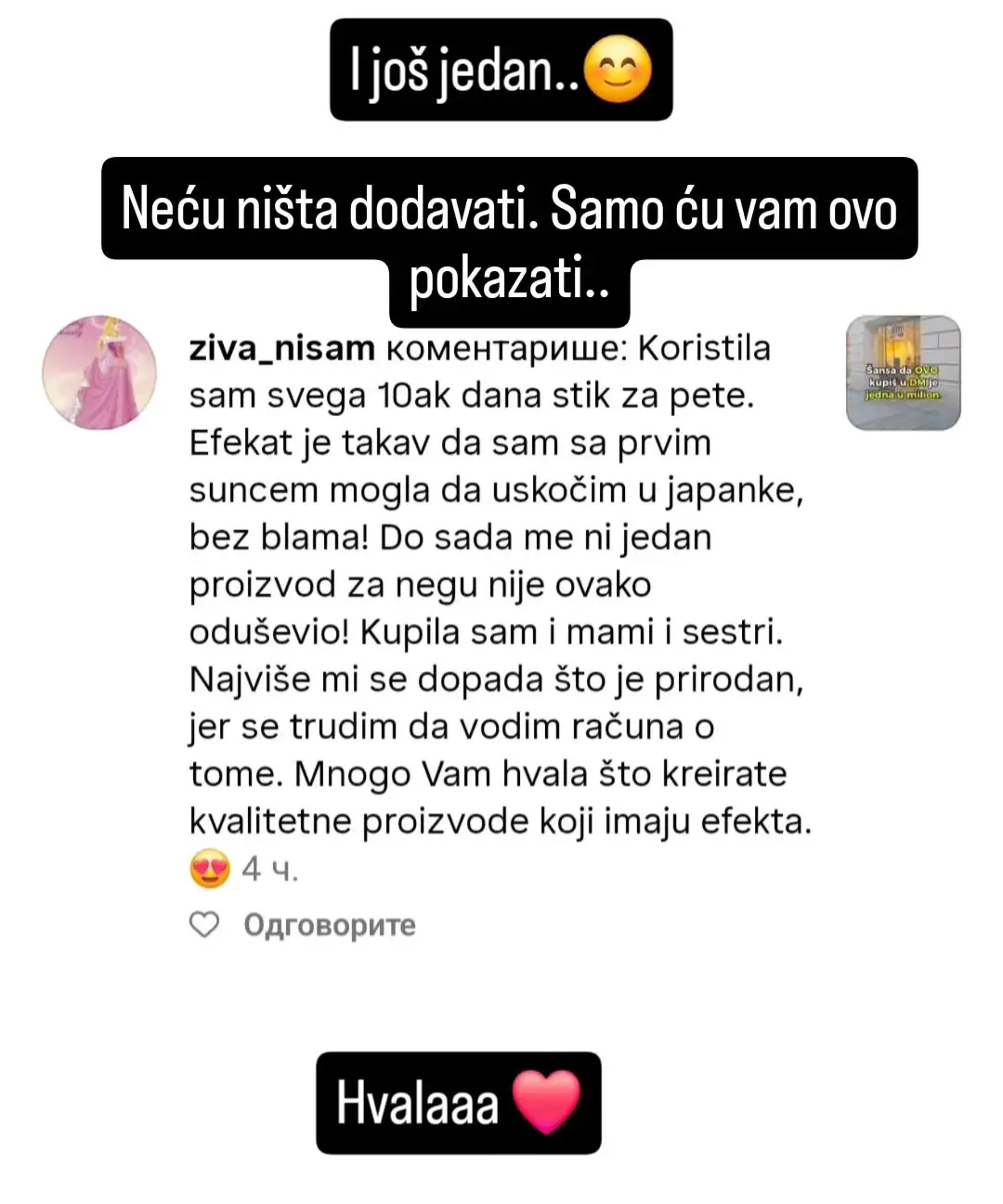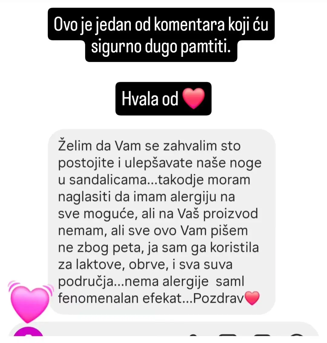 Naručila sam paket iz Kap zdravlja online prodavnice i moram reći da sam jako zadovoljna. Sigurno ću ponovo naručivati i rado preporučujem Kap zdravlja svima koji žele kvalitetne proizvode za negu stopala.
