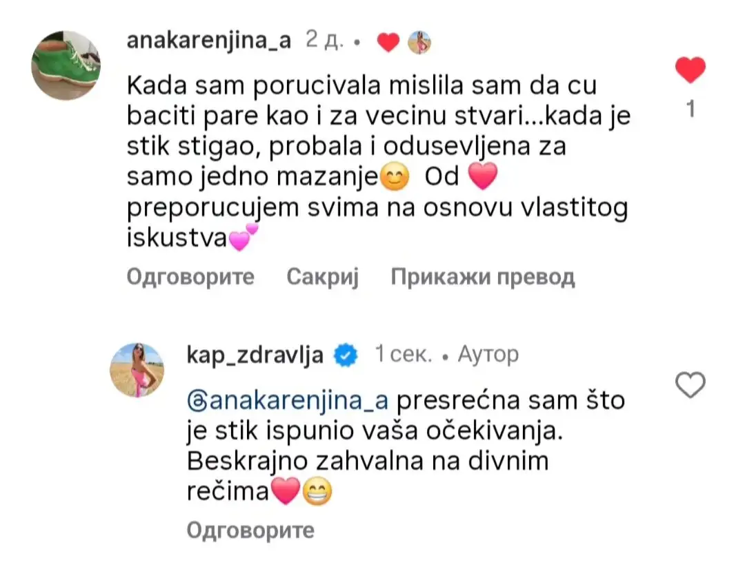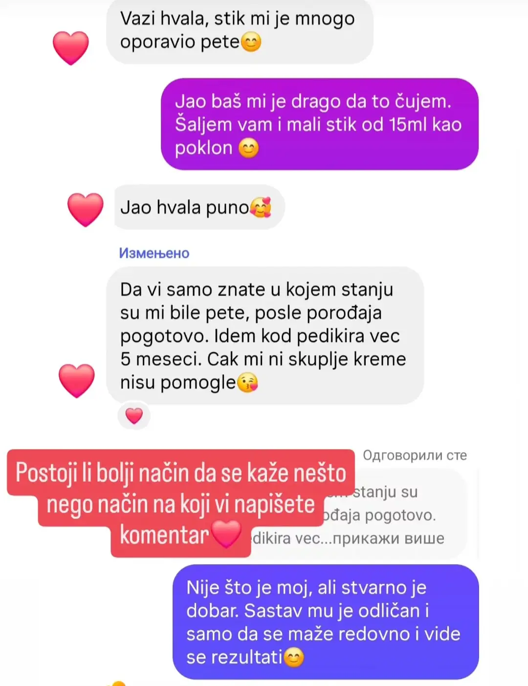Pete su mi godinama problem, posebno zimi – ispucale, suve, ništa nije drugo pomagalo. Naišla sam na Kap zdravlja stik za pete i odlučila da probam. Već posle nekoliko dana nanošenja pre spavanja primetila sam razliku – koža je mekša i nema više onog neugodnog osećaja pri hodu. Posle dve nedelje pete su bukvalno kao nove. Miris je prirodan i prijatan, ne maže se i ne lepi, što mi je super jer mogu odmah da navučem čarape. Stik od 50ml traje, ne nestaje brzo kao neke kreme. Preporučujem svima koji se bore sa ovim problemom – vredi svake pare!